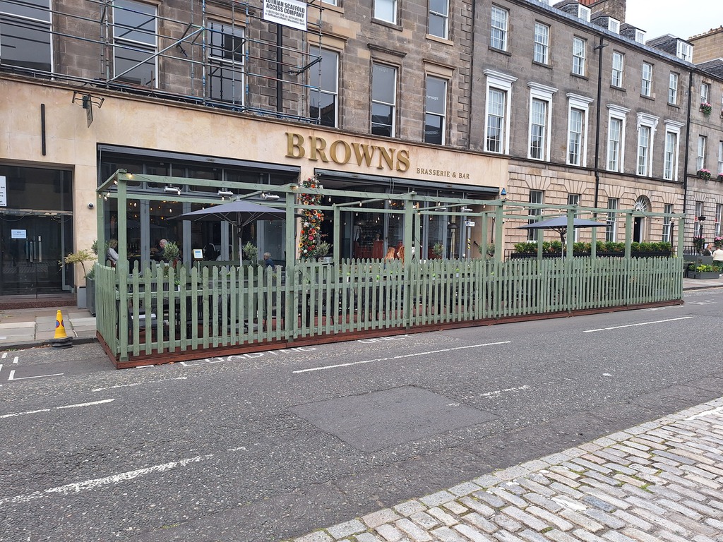 Danach ging es in die Innenstadt, ins Parkhaus am Radisson Hotel. Von dort aus ging es in den Tron Kirk Market, eine alte Kirche, die inzwischen als Kunsthandwerkermarkt dient. Man merkte es allerorten, dass nicht nur Tattoo- sondern auch Fringe Festival-Zeit war. Nach viel Fußmarsch und erstem Geld abheben kamen wir in der George Street zu Brown's Restaurant, sehr elegant, wo es einen tollen, aber trotzdem erschwinglichen High Tea gab.